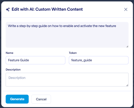 Additionally, you can give the Content Studio a prompt in order to create your own written content. Simply click on Custom Written Content and give a prompt when asked.